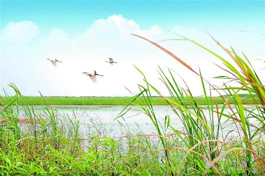圖為:梁子湖流域良好生態(tài),吸引大量鳥類憩息。(《鄂州日報》提供)